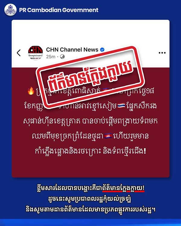 ដូចនេះសូមប្រជាពលរដ្ឋកុំយល់ច្រឡំ និងសូមតាមដានព័ត៌មានដែលមានប្រភពផ្លូវការរបស់រដ្ឋ។(AKP)