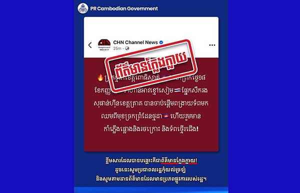 ខ្លឹមសារដែលបានបង្ហោះនេះ គឺជាព័ត៌មានក្លែងក្លាយ!