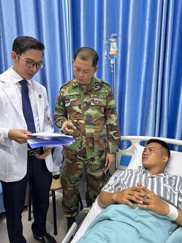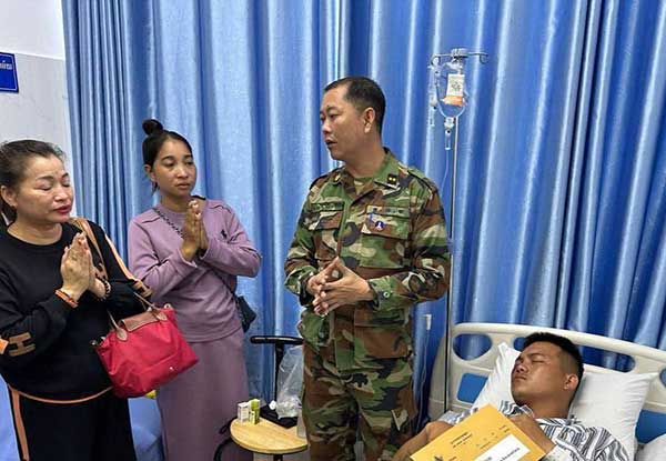 នៅព្រឹកថ្ងៃទី១៨ ខែកញ្ញា ឆ្នាំ២០២៥ តំណាងក្រសួងការពារជាតិ បានចុះសួរសុខទុក្ខ និងនាំយកថវិកាមួយចំនួនដែលជាអំណោយរបស់ ឯកឧត្តម នាយឧត្តមសេនីយ៍ ទៀ សីហា ឧបនាយករដ្ឋមន្ត្រី រដ្ឋមន្ត្រីក្រសួងការពារជាតិ ជូនដល់ ពលបាលឯក ម៉ន ភក្រ្តា ដែលបានរងរបួសភ្នែកខាងស្តាំធ្ងន់ធ្ងរ ក្នុងអំឡុងពេលបំពេញភារកិច្ច ក្នុងហេតុការណ៍ប៉ះទង្គិចគ្នារវាងកងកម្លាំងថៃ និងប្រជាជនកម្ពុជា នៅភូមិព្រៃចាន់ ឃុំអូរបីជាន់ ស្រុកអូរជ្រៅ ខេត្តបន្ទាយមានជ័យ កាលពីល្ងាចថ្ងៃពុធ ទី១៧ ខែកញ្ញា ឆ្នាំ២០២៥ ដែលបច្ចុប្បន្នកំពុងសម្រាកព្យាបាល និងយកចិត្តទុកដាក់ពីសំណាក់លោកគ្រូអ្នកគ្រូ នៅមន្ទីរពេទ្យព្រះអង្គឌួង៕