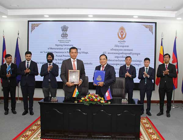 ភ្នំពេញ ៖ ថ្ងៃទី១៨ ខែកញ្ញា ឆ្នាំ២០២៥ នៅទីស្នាក់ការអាជ្ញាធរមីន ឯកឧត្តមបណ្ឌិត លី ធុជ ទេសរដ្ឋមន្រ្តី និងជាអនុប្រធានទី១ អាជ្ញាធរមីន និង ឯកឧត្តម Vanlalvawna Bawitlung ឯកអគ្គរដ្ឋទូតឥណ្ឌាប្រចាំនៅកម្ពុជា បានអញ្ជើញចុះហត្ថលេខាលើអនុស្សារណៈនៃការយោគយល់គ្នា ស្តីពីការបោសសម្អាតមីនក្នុងភូមិព្រៃអណ្តូង ឃុំប្រងិល ស្រុកភ្នំក្រវ៉ាញ ខេត្តពោធិ៍សាត់ ដើម្បីប្រកាសជាភូមិអស់មីន ក្រោមជំនួយឥតសំណងរបស់រដ្ឋាភិបាលឥណ្ឌា តាមរយៈការអនុវត្តគម្រោងផ្តល់ផលរហ័សនៅកម្ពុជា “Quick Impact Projects” រវាងអាជ្ញាធរមីន និងស្ថានទូតឥណ្ឌាប្រចាំកម្ពុជា។