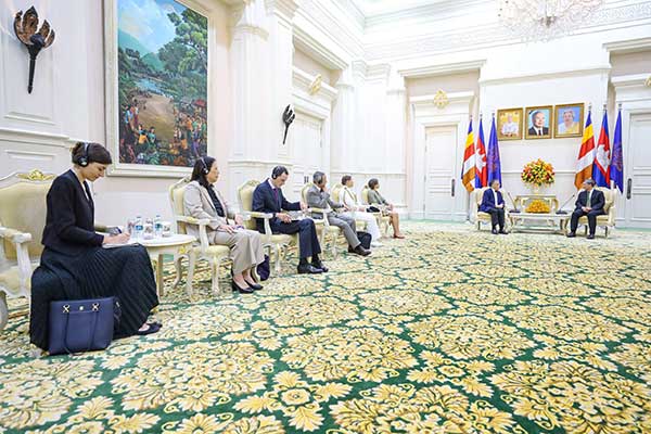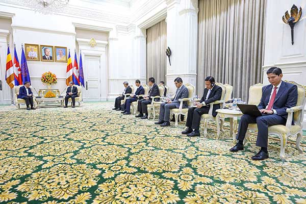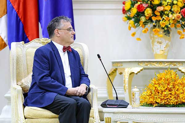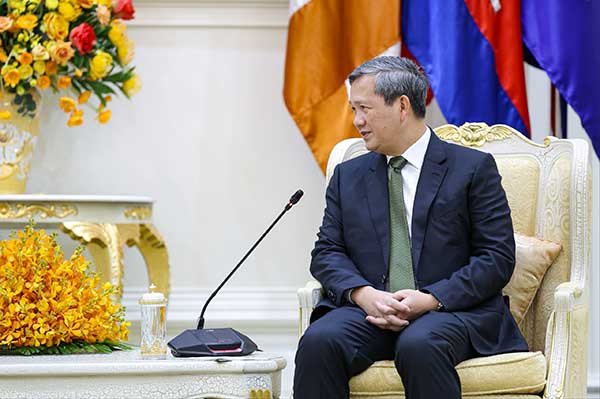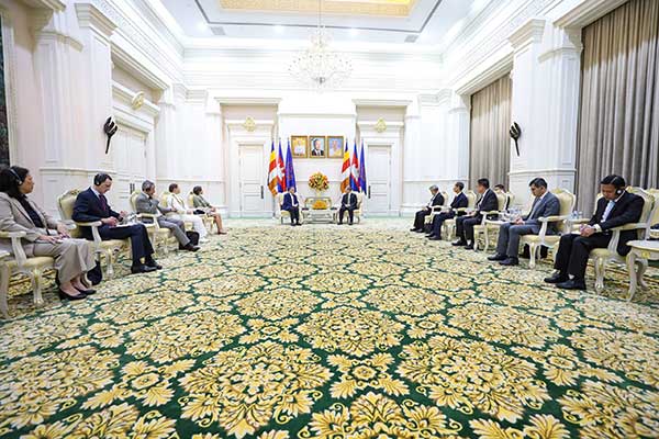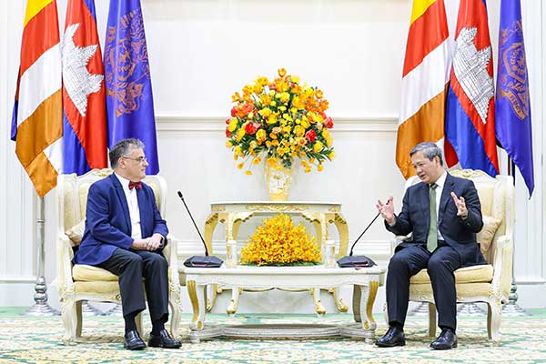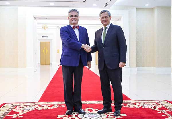 (ភ្នំពេញ) សម្តេចមហាបវរធិបតី ហ៊ុន ម៉ាណែត នាយករដ្ឋមន្ត្រី នៃព្រះរាជាណាចក្រកម្ពុជា អនុញ្ញាតជូន ឯកឧត្តម Olivier Richard ឯកអគ្គរដ្ឋទូតសាធារណរដ្ឋបារាំងតែងតាំងថ្មី ប្រចាំនៅកម្ពុជា ចូលជួបសម្តែងការគួរសម និងពិភាក្សាការងារ នៅវិមានសន្តិភាព រាជធានីភ្នំពេញ នាព្រឹកថ្ងៃទី១៩ ខែកញ្ញា ឆ្នាំ២០២៥។(AKP)