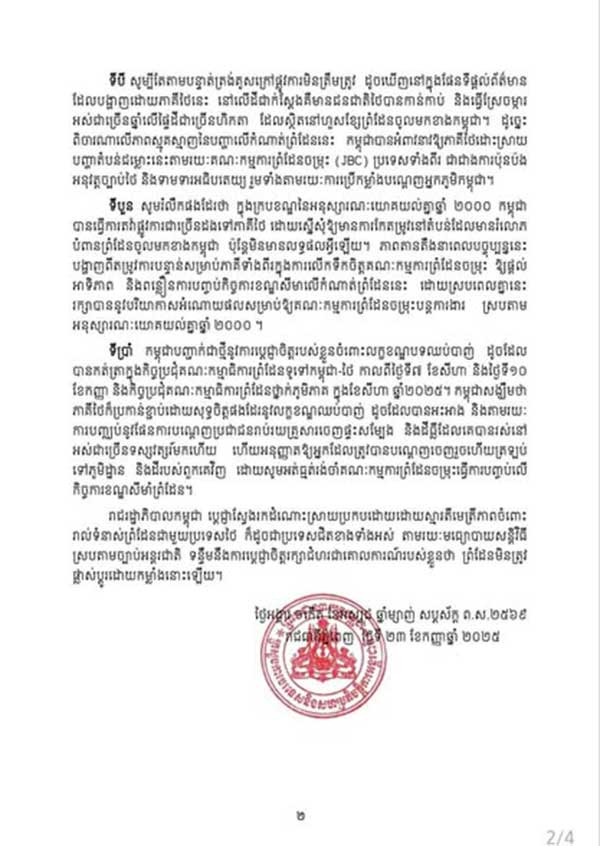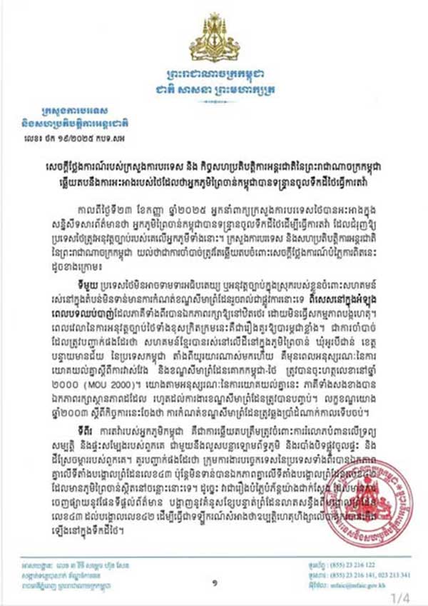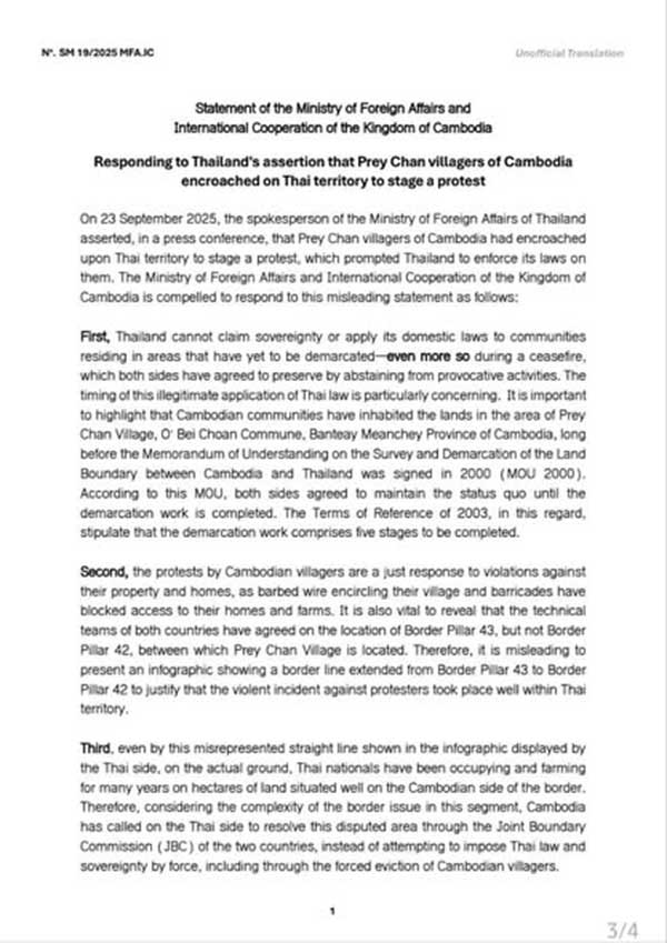 សេចក្ដីថ្លែងការណ៍របស់ក្រសួងការបរទេស និង កិច្ចសហប្រតិបត្តិការអន្តរជាតិនៃព្រះរាជាណាចក្រកម្ពុជា ឆ្លើយតបនឹងការអះអាងរបស់ថៃដែលថាអ្នកភូមិព្រៃចាន់កម្ពុជាបានទន្ទ្រានចូលទឹកដីថៃធ្វើការតវ៉ា