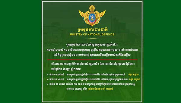 The Ministry of National Defense of the Kingdom of Cambodia wishes to inform the general public and the international community as follows: