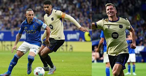 កីឡាករ Eric Garcia, Robert Lewandowski និង Ronald Araujo បានសហការគ្នារកបានម្នាក់ ១គ្រាប់ បន្ទាប់ពី Alberto Reina ជាអ្នករកបានគ្រាប់នាំមុខឱ្យម្ចាស់ផ្ទះ Oviedo ដែលទើបឡើងមកលេងក្នុងក្របខណ្ឌលីគកំពូលអេស្ប៉ាញ La Liga រដូវកាលនេះ។