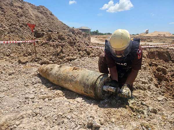ចម្លេីយខ្លី៖ បេីផ្អែកតាមលក្ខណៈបច្ចេកទេសមានចំនុចវិភាគសំណាកជាច្រេីនដែលខ្ញុំសុំមិនធ្វេីការបកស្រាយលំអិតក្នុងវាទិកានេះទេ និងសុំលេីកយកចំនុចសង្ខេបខ្លីមកបញ្ជាក់ជូនជ្រាបថា៖ គ្រាប់បែកទម្លាក់ពីយន្តហោះក្តី ឬគ្រាប់កាំភ្លេីងធំក្តី សុទ្ធតែមានលេខកូដសម្គាល់ខែឆ្នាំផលិត ឬប្រទេស/ក្រុមហ៊ុនផលិត បន្ថែមលេីសនេះសម្រាប់កម្ពុជា រាជរដ្ឋាភិបាលបានពង្រឹងសមត្ថភាពអង្គភាពCMAC ក្នុងការធ្វេីការសិក្សាស្រាវជ្រាវព័ត៌មាននិងរៀបចំទិន្នន័យការទម្លាក់គ្រាប់បែកក្នុងសម័យសង្គ្រាមអតីតកាលបានយ៉ាងច្បាស់លាស់ ដោយមានកំណត់ត្រាព័ត៌មានពាក់ពន្ធ័ការទម្លាក់គ្រាប់បែកពីយន្តហោះ ដូចជាកាលបរិច្ឆេទ ប្រភេទយន្តហោះ និងចំនុចទីតាំងនៃការទម្លាក់គ្រាប់បែកទាំងនោះផងដែរ។