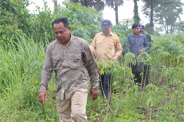 (កំពង់ធំ)៖ លោក ហាក់ ម៉ុងហួត អភិបាលស្រុកតាំងគោក នាព្រឹកថ្ងៃទី៣០ ខែកញ្ញា ឆ្នាំ២០២៥នេះ បានដឹកនាំមន្ត្រីជំនាញចុះពិនិត្យមើលស្ថានភាពដំណាំដំឡូងរបស់ប្រជាពលរដ្ឋនៅក្នុងមូលដ្ឋានស្រុកតាំងគោក ដែលបានរងផលប៉ះពាល់ដោយសារភ្លៀងធ្លាក់ជាប់ៗគ្នាជាច្រើនថ្ងៃ ដែលធ្វើកន្លែងខ្លះដំណាំដំឡូងរបស់ប្រជាពលរដ្ឋត្រូវបានខូចខាត។