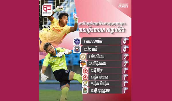 ​កយ សាលីម និង វិរៈ​ ដារ៉ា ឈរកំពូលតារាង Clean-Sheets ​បណ្ដោះ​អាស​ន្ននៅ CPL គិតត្រឹមសប្ដាហ៍ទី៦