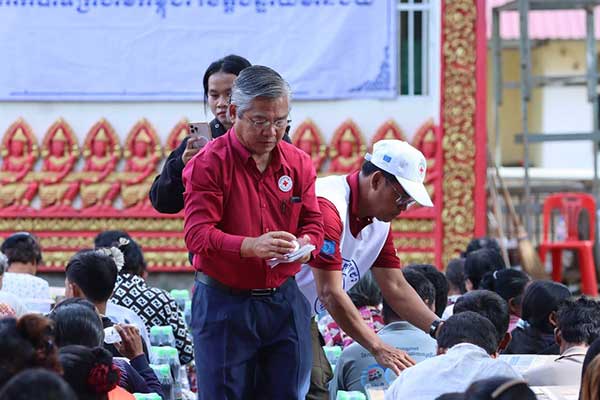 បន្ទាយមានជ័យ ៖ នៅព្រឹកថ្ងៃទី០១ ខែតុលា ឆ្នាំ២០២៥ លោក អ៊ុំ រាត្រី អភិបាលខេត្តបន្ទាយមានជ័យ និងជាប្រធានគណៈកម្មាធិការសាខាកាកបាទក្រហមកម្ពុជាខេត្តបន្ទាយមានជ័យ នាំយកអំណោយមនុស្សធម៌សាខាកាកបាទក្រហមកម្ពុជាខេត្ត ផ្តល់ជូនដល់ពលរដ្ឋដែលមានជីវភាពខ្វះខាត២៥០គ្រួសារ មកនៅក្នុងភូមិសិលាខ្មែរ ១៥០គ្រួសារ និងភូមិទំនប់ដាច់១០០គ្រួសារ ប្រារព្ធធ្វេីឡេីងនៅសុវណ្ណសីលារាម(វត្តអាងសិលា) ស្ថិតនៅឃុំអូរបីជាន់ស្រុកអូរជ្រៅ ខេត្តបន្ទាយមានជ័យ៕