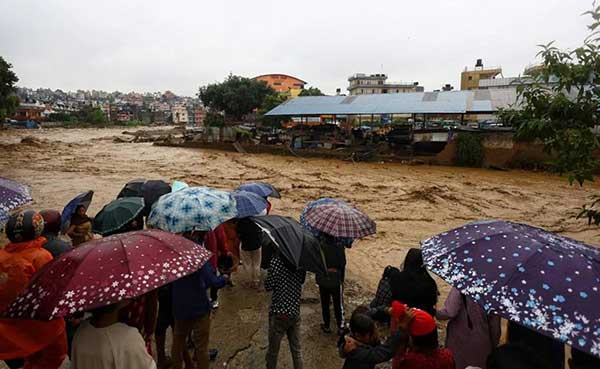 ភ្លៀងធ្លាក់យ៉ាងគំហុក បានបោកបក់លើប្រទេសនេប៉ាល់ ចាប់តាំងពីថ្ងៃសុក្រ ដោយធ្វើឱ្យទឹកទន្លេហក់ឡើងខ្លាំង និងតំបន់ជាច្រើននៃជួរភ្នំហិម៉ាឡៃត្រូវជន់លិច។