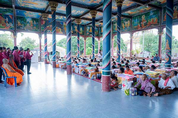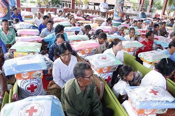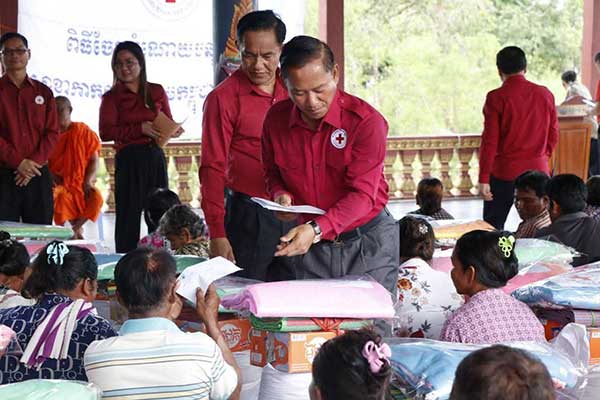លោក វ៉ី សំណាង អភិបាលខេត្តបានពាំនាំនូវការផ្ដាំផ្ញើរសួរសុខទុក្ខពីសំណាក់ ឯកឧត្ដមបណ្ឌិត ជា វ៉ាន់ដេត ប្រធានកិត្តិយសសាខាកាកបាទក្រហមកម្ពុជា ខេត្តតាកែវ ពិសេសពីសំណាក់ សម្ដេចកិតិ្តព្រឹទ្ធបណ្ឌិត ប៊ុន រ៉ានី ហ៊ុនសែន ប្រធានកាកបាទក្រហមកម្ពុជា ដែលជានិច្ចកាលសម្ដេច តែងតែយកចិត្តទុក ដាក់គិតគូរខ្ពស់អំពីសុខទុក្ខដល់ប្រជាពលរដ្ឋដែលរងគ្រោះ និងងាយរងគ្រោះគ្រប់ប្រភេទ នៅគ្រប់ទីកន្លែងដោយមិន ប្រកាន់និន្នាការ ពូជសាសន៍ សាសនា អ្វីឡើយ ដូចពាក្យស្លោក ទីណាមានការលំបាកទីនោះមានកាកបាទក្រហម កម្ពុជា។