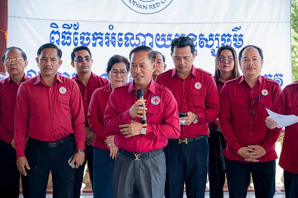 តាកែវ៖ នៅថ្ងៃទី០៧ ខែតុលា ឆ្នាំ២០២៥ លោក វ៉ី សំណាង ប្រធានគណៈកម្មាធិការសាខា កាកបាទក្រហមកម្ពុជា ខេត្តតាកែវ បានអញ្ជើញសួរសុខទុក្ខ និងនាំយកអំណោយរបស់ សម្ដេចកិត្តិព្រឹទ្ធបណ្ឌិត ប៊ុន រ៉ានី ហ៊ុនសែន ប្រធានកាកបាទក្រហមកម្ពុជា មកចែកជូនបងប្អូនប្រជាពលរដ្ឋដែលជួបបញ្ហាគ្រោះទឹកជំនន់ចំនួន ១០០គ្រួសារ នៅឃុំកំណប់ ស្រុកគិរីវង់ ខេត្តតាកែវ។