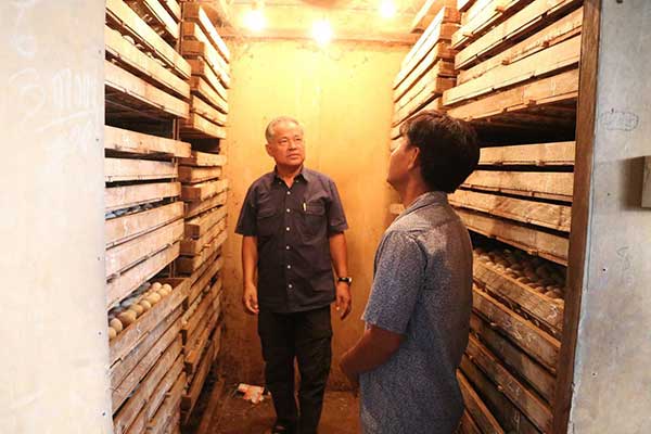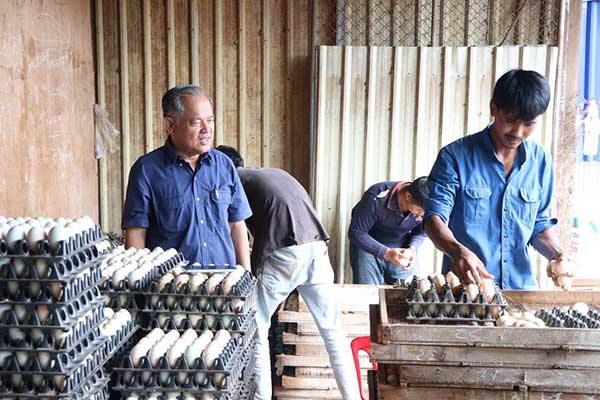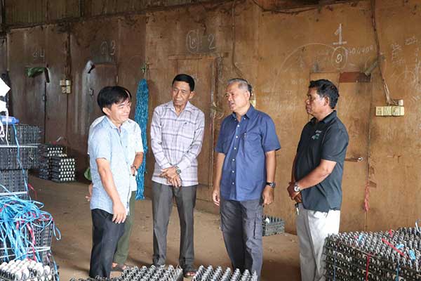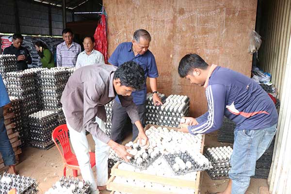 ខេត្តកំពង់ធំ ៖ អភិបាលស្រុកតាំងគោកលោក ហាក់ ម៉ុងហួត រួមនឹងសហការី បានចុះពិនិត្យមើលសង្វាក់ផលិតកម្មសត្វ ( ភ្ញាស់ពងទា) នៅឃុំទ្រៀល ដែលផលិត និងចែកចាយក្នុងមួយថ្ងៃៗប្រមាណពី ២៥០.០០០ (ម្ភៃប្រាំម៉ឺន)ទៅ ៣០០.០០០(សាមសិបម៉ឺន)គ្រាប់ ក្នុងនោះពងភ្ញាស់រង្វង់៧០% និងពងសាប ៣០% នាំទៅកាន់ទីផ្សារក្នុងខេត្ត ក្រុងភ្នំពេញ និងបណ្តាខេត្តមួយចំនួនទៀត។