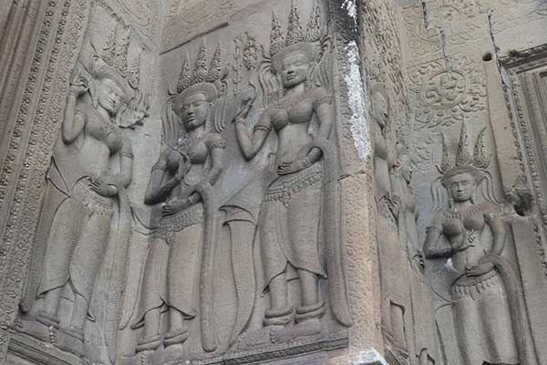 ពេលដែលភ្ញៀវទេសចរជាច្រើន បានមកទស្សនាប្រាសាទអង្គរវត្ត ក្រៅតែពីគេចាប់អារម្មណ៍ទៅលើសំណង់បុរាណដ៏អស្ចារ្យ ក្នុងនោះ ក៏ចាប់អារម្មណ៍ទៅលើចម្លាក់ទេពអប្សរនៅតាមជញ្ជាំងនៃប្រាសាទអង្គរវត្ត ដែលមានការឆ្លាក់លម្អពីមួយទីមួយខុសប្លែកពីគ្នា មានភាពរស់រវើកគួរឱ្យកោតស្ងប់ស្ញែងក្រៃលែង។
