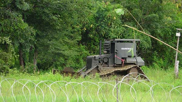បន្ទាយមានជ័យ ៖ កងកម្លាំងចម្រុះថៃជាច្រើននាក់ប្រដាប់ដោយអាវុធ បានបន្តសកម្មភាពរំលោភបំពានលើដែនអធិបតេយ្យភាពរបស់កម្ពុជា ដោយលួចធ្វើការឈូសឆាយនៅតំបន់ភូមិព្រៃចាន់ ឃុំអូរបីជាន់ ស្រុកអូរជ្រៅ ខេត្តបន្ទាយមានជ័យ នៅព្រឹកថ្ងៃទី១៣ ខែតុលា ឆ្នាំ២០២៥នេះ។