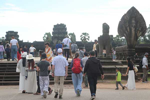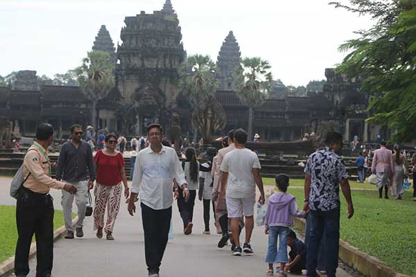 មុននឹងចូលទៅដល់នៃប្រាង្គប្រាសាទ ទេសចរដើរឆ្លងកាត់ស្ពានហាល កសិន្ធុទឹក ខ្លោងទ្វារ ដែលមើលពីចម្ងាយទេសចរបានគយគន់កំពូលនៃប្រាសាទអង្គរវត្ត នាំឱ្យទេសចរបំភ្លេចមិនបាននូវស្នាដៃរចនាសម្ពន្ធស្ថាបត្យកម្មដូនតាខ្មែរ ក៏ដូចជាការគោរពលើកតម្លៃប្រាសាទអង្គរវត្តផង។ ដូច្នេះហើយ ទើបអាជ្ញាធរជាតិអប្សរា ខិតខំរៀបចំបរិវេណខាងមុខប្រាសាទអង្គរវត្ត ឱ្យសក្តិសមនឹងអច្ឆរិយៈវត្ថុនៅក្នុងសកលលោក សម្រាប់ទទួលទេសចរចម្រុះជាតិសាសន៍មកទស្សនាប្រាសាទអង្គរវត្ត៕