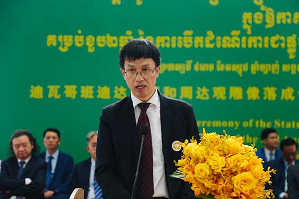 លោកជឿជាក់ថា អាកាសយានដ្ឋានអន្តរជាតិសៀមរាបអង្គរនឹងបន្តបង្កើតភាពរុងរឿងថ្មី និងរួមចំណែកកាន់តែច្រើន ក្នុងការកសាងរួមគ្នា នៃ “ខ្សែក្រវាត់ និងផ្លូវ” រវាងចិន និងកម្ពុជា។ លោកបន្ថែមថា ពិធីសម្ពោធរូបសំណាកទាំងពីរ នៅអាកាសយានដ្ឋាន បានបន្ថែមទិដ្ឋភាពវប្បធម៌យ៉ាងជ្រាលជ្រៅ ដល់ពិធីររម្លឹកខួប ២ឆ្នាំ និង ចាក់បញ្ចូលភាពរឹងមាំ ទៅក្នុងកិច្ចសហប្រតិបត្តិការវប្បធម៌ និង ទេសចរណ៍ ចិន-កម្ពុជា និងបន្ថែម “សាក្សីប្រវត្តិសាស្ត្រ” ដល់មិត្តភាពចិន-កម្ពុជា។