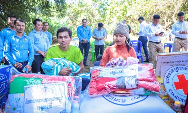 សាខាកាកបាទក្រហមខេត្ត៖ អង្ករ ៦០គីឡូក្រាម, មី ២កេស, ត្រីខ ២០កំប៉ុង, ទឹកត្រី ១២ដប, ប្រេងឆា ២ដប, ម្សៅសាប៊ូ ២កញ្ចប់ និងឃីត (មុង ភួយ សារុង ក្រមា) ២កញ្ចប់ ពូកឈុតកូនក្មេង ២  មុងគ្រប២ មួកកូនក្មេង២ ស្រោមដៃ ជើងកូនក្មេង ២គូរ ខោអាវកូនង៉ែត ២ឈុត កន្សែងពោះគោ ២ ម្សៅកូនក្មេង ២កំប៉ុង សាប៊ូកូនក្មេង ២ដប  និង ថវិកាមួយចំនួននិងអនុសាខាស្រុកអូរជុំ៖ ថវិកាចំនួន ៣០ម៉ឺនរៀលផងដែរ៕