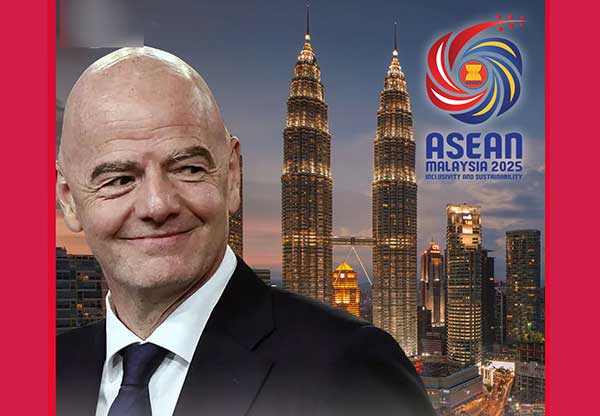 ប្រធានសហព័ន្ធបាល់ទាត់ពិភពលោកដែលហៅកាតថា FIFA លោក Gianni Infantino ត្រូវបានកំណត់នឹងធ្វើទស្សនកិច្ចនៅទីក្រុងកូឡាឡាំពួ ប្រទេសម៉ាឡេស៊ីនៅថ្ងៃទី ២៥ ខែតុលា ដើម្បីចូលរួមក្នុងកិច្ចប្រជុំកំពូលបាល់ទាត់អាស៊ាន(ASEAN Football Summit 2025)។ នេះបើយោងតាមរបាយការណ៍ប្រព័ន្ធផ្សព្វផ្សាយក្នុងស្រុក។