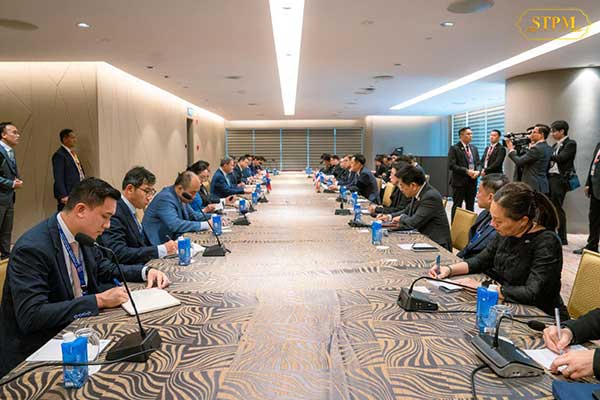 (គូឡាឡាំពួ) ថ្ងៃទី២៨ ខែតុលា ឆ្នាំ២០២៥ សម្តេចមហាបវរធិបតី ហ៊ុន ម៉ាណែត នាយករដ្ឋមន្ត្រី នៃព្រះរាជាណាចក្រកម្ពុជា ទទួលជួបពិភាក្សាការងារទ្វេភាគីជាមួយឯកឧត្តម អនុទីន ឆានវីរគុល (Anitin Charnvirakul) នាយករដ្ឋមន្ត្រី នៃព្រះរាជាណាចក្រថៃឡង់ដ៏ នាព្រឹកថ្ងៃទី២៨ ខែតុលា ឆ្នាំ២០២៥ នៅរដ្ឋធានីគូឡាឡាំពួ ប្រទេសម៉ាឡេស៊ី។(ដកស្រង់ពី៖ AKP)
