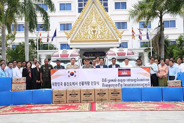 ឆ្លៀតក្នុងឱកាសនោះ ក៏មានកម្មវិធីប្រគល់-ទទួលរថយន្ត និងគ្រឿងឥស្សរិយយស លិខិតថ្លែងអំណរគុណ ព្រមទាំងវត្ថុអនុស្សាវរីយ៍ ជូនដល់ដល់សប្បុរសជន ០៥រូប នៃសាធារណរដ្ឋកូរ៉េ ដែលបានជួយឧបត្ថម្ភសម្ភារ បរិក្ខារពេទ្យ ថ្នាំពេទ្យ រថយន្តសង្គ្រោះបន្ទាប់ និងរថយន្តពន្លត់អគ្គិភ័យផងដែរ៕