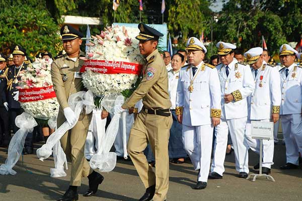 ក្នុងអង្គពិធីទាំងមូល សូមសម្ដែងនូវកត្តញ្ញុតាធម៌ និងដឹងគុណយ៉ាងជ្រាលជ្រៅបំផុតថ្វាយ ព្រះករុណា ព្រះបាទ នរោត្ដម សីហនុ អតីតព្រះមហាវីរក្សត្រ ព្រះវររាជបិតាឯករាជជាតិ បូរណភាពទឹកដី និងឯកភាពជាតិខ្មែរ ព្រះបរមរតនកោដ្ឋ ដែលព្រះអង្គបានបូជាព្រះកាយពល និងព្រះបញ្ញាញាណជម្នះគ្រប់ឧបសគ្គ ដើម្បីនាំមកនូវសន្តិភាព ការផ្សះផ្សរជាតិ ភាពចម្រុងចម្រើន និងកិត្តិយសដល់មាតុភូមិ និងប្រជារាស្រ្តខ្មែរ៕ គឹមសេង
