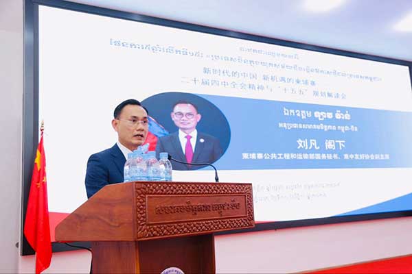 (ភ្នំពេញ) រសៀលថ្ងៃទី១០ ខែវិច្ឆិកា ឆ្នាំ២០២៥ នៅសមាគមមិត្តភាពកម្ពុជា-ចិន ក្រុមបញ្ញវន្តជាន់ខ្ពស់និងក្រុមអ្នកសារព័ត៌មាន កម្ពុជា-ចិន ៦រូប បានរួមគ្នារៀបចំបាឋកថាឈ្វេងយល់ពី «ផែនការ ៥ឆ្នាំលើកទី១៥ ៖ ប្រទេសចិនក្នុងយុគសម័យថ្មី បង្កើតឳកាសថ្មីដល់ប្រទេសកម្ពុជា»។ នៅក្នុងវេទិកាដែលបានសហការរៀបចំឡើងដោយសមាគមអ្នកស្រាវជ្រាវវឌ្ឍនភាពកម្ពុជា-ចិន មជ្ឈមណ្ឌលកម្ពុជាដើម្បីសិក្សារស្រាវជ្រាវផ្លូវសូត្រសមុទ្រ និងវិទ្យុមិត្តភាពកម្ពុជា-ចិននៃអគ្គស្ថានីយវិទ្យុនិងទូរទស្សន៍មជ្ឈិមចិន។