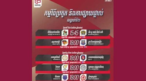 កម្មវិធីប្រកួតលីគកំពូលកម្ពុជា សម្រាបសប្ដាហ៍ទី២