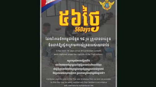 ថ្ងៃនេះជា ថ្ងៃទី៥៦ហើយ ដែលវីរកងទ័ពកម្ពុជាចំនួន ១៨រូប ត្រូវបានចាប់ខ្លួន និងដាក់ឱ្យស្ថិតក្រោមការឃុំគ្រងរបស់យោធាថៃ…