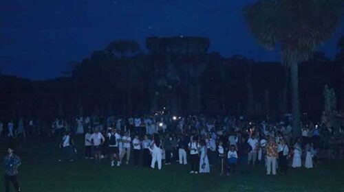 ទិដ្ឋភាពថ្ងៃរះពេលព្រឹកព្រលឹមនៃព្រឹត្តិការណ៍សមរាត្រី មានភ្ញៀវទេសចរជាតិ-អន្តរជាតិជាច្រើនកុះករ បានមកទស្សនានិងផ្តិតយករូបភាពដ៏អស្ចារ្យនៅប្រាសាទអង្គរ