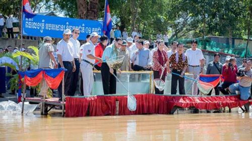 ខេត្តតាកែវ រៀបចំពិធី លែងកូនត្រី និងបង្កង ជាង ៦ ម៉ឺនក្បាល ចូលដងស្ទឹងអង្គរបូរី ស្រុកអង្គរបូរី