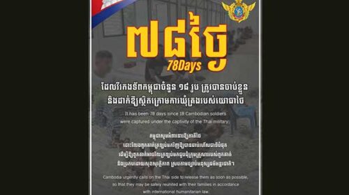 ថ្ងៃនេះជា ថ្ងៃទី៧៨ហើយ ដែលវីរកងទ័ពកម្ពុជាចំនួន ១៨រូប ត្រូវបានចាប់ខ្លួន និងដាក់ឱ្យស្ថិតក្រោមការឃុំគ្រងរបស់យោធាថៃ…