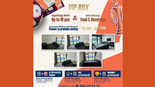បន្ទប់ VIP BOX ទស្សនាការប្រកួតរបស់ព្រះខ័នរាជស្វាយរៀងពាន AFC Challenge League ពូល D ទាំងបីប្រកួតបើកទទួលកក់ហើយ