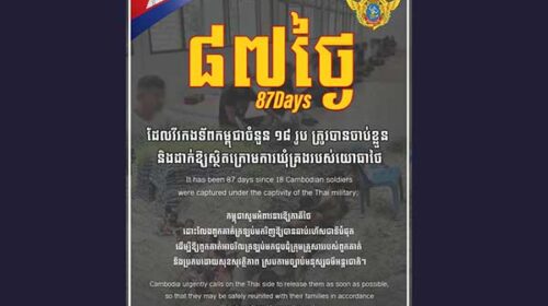 ថ្ងៃនេះជា ថ្ងៃទី៨៧ហើយ ដែលវីរកងទ័ពកម្ពុជាចំនួន ១៨រូប ត្រូវបានចាប់ខ្លួន និងដាក់ឱ្យស្ថិតក្រោមការឃុំគ្រងរបស់យោធាថៃ