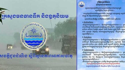 ក្រសួងធនធានទឹក និងឧតុនិយម បានជូនអំពីស្ថានភាពធាតុអាកាសនៅព្រះរាជាណាចក្រកម្ពុជា សម្រាប់ថ្ងៃទី២៤ ខែតុលា ឆ្នាំ២០២៥៖ របបខ្យល់មូសុងដែល…