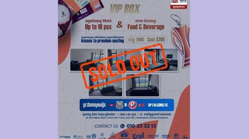 បន្ទប់ VIP BOX ទស្សនាការប្រកួតដំបូងរបស់ព្រះខ័នរាជស្វាយរៀងក្នុងពាន AFC Challenge League ត្រូវបានលក់អស់ហើយ