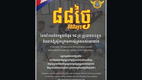 ថ្ងៃនេះជា ថ្ងៃទី៨៨ហើយ ដែលវីរកងទ័ពកម្ពុជាចំនួន ១៨រូប ត្រូវបានចាប់ខ្លួន និងដាក់ឱ្យស្ថិតក្រោមការឃុំគ្រងរបស់យោធាថៃ…