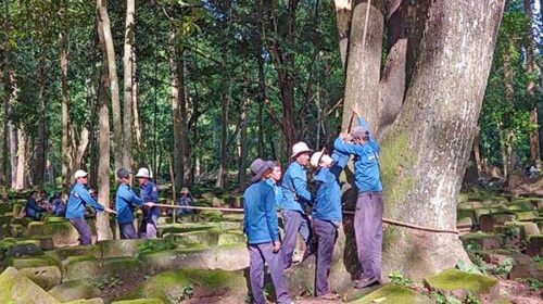 ក្រុមការងារព្រៃឈើ នៃអាជ្ញាធរជាតិអប្សរា បាននិងកំពុងកាត់ដើមឈើយាងមួយដើម ដែលមានហានិភ័យ អាចបង្កគ្រោះថ្នាក់ជាយថាហេតុ។…
