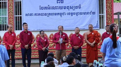 សាខាកាកបាទក្រហមកម្ពុជាខេត្តបន្ទាយមានជ័យ នាំយកអំណោយមនុស្សធម៌ជូនប្រជាពលរដ្ឋជួបការលំបាកនៅភូមិសិលាខ្មែរ ១៥០គ្រួសារ និងភូមិទំនប់ដាច់១០០គ្រួសារ