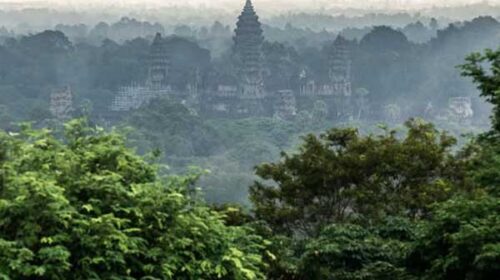 ទិដ្ឋភាពប្រាសាទភ្នំបាខែង ហ៊ុមព័ទ្ធដោយធម្មជាតិ អមដោយផ្សែងអ័ព្ទនាព្រឹកព្រលឹម ប្រៀបបានប្រាសាទសួគ៌…