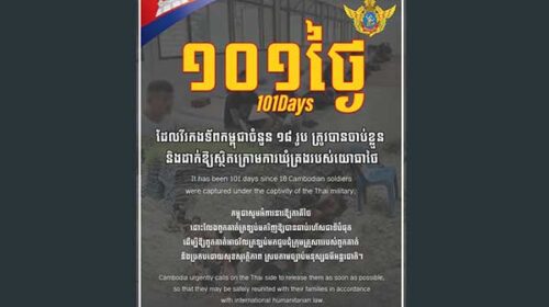 ថ្ងៃនេះជា ថ្ងៃទី១០១ហើយ ដែលវីរកងទ័ពកម្ពុជាចំនួន ១៨រូប ត្រូវបានចាប់ខ្លួន និងដាក់ឱ្យស្ថិតក្រោមការឃុំគ្រងរបស់យោធាថៃ…