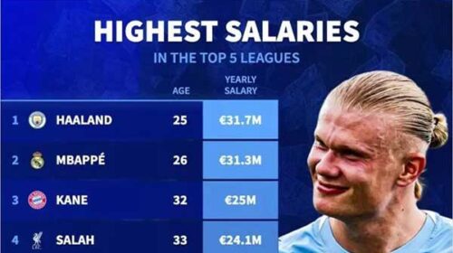 យោងតាមការចេញផ្សាយរបស់គេហទំព័រព័ Transfer Market ស្តីអំពីប្រាក់ខែ របស់កីឡាករនៅលីគកំពូលអឺរ៉ុបទាំង៥កាលពីពេលថ្មីៗនេះ ដែលមានដូចខាង…