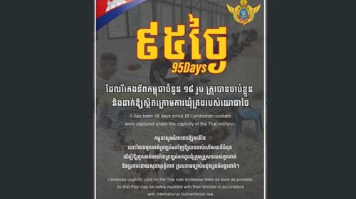 ថ្ងៃនេះជា ថ្ងៃទី៩៥ហើយ ដែលវីរកងទ័ពកម្ពុជាចំនួន ១៨រូប ត្រូវបានចាប់ខ្លួន និងដាក់ឱ្យស្ថិតក្រោមការឃុំគ្រងរបស់យោធាថៃ…