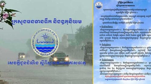 ក្រសួងធនធានទឹក ជូនដំណឹងអំពីស្ថានភាពធាតុអាកាសនៅកម្ពុជា ចាប់ពីថ្ងៃនេះដល់ថ្ងៃទី៣ ខែវិច្ឆិកា
